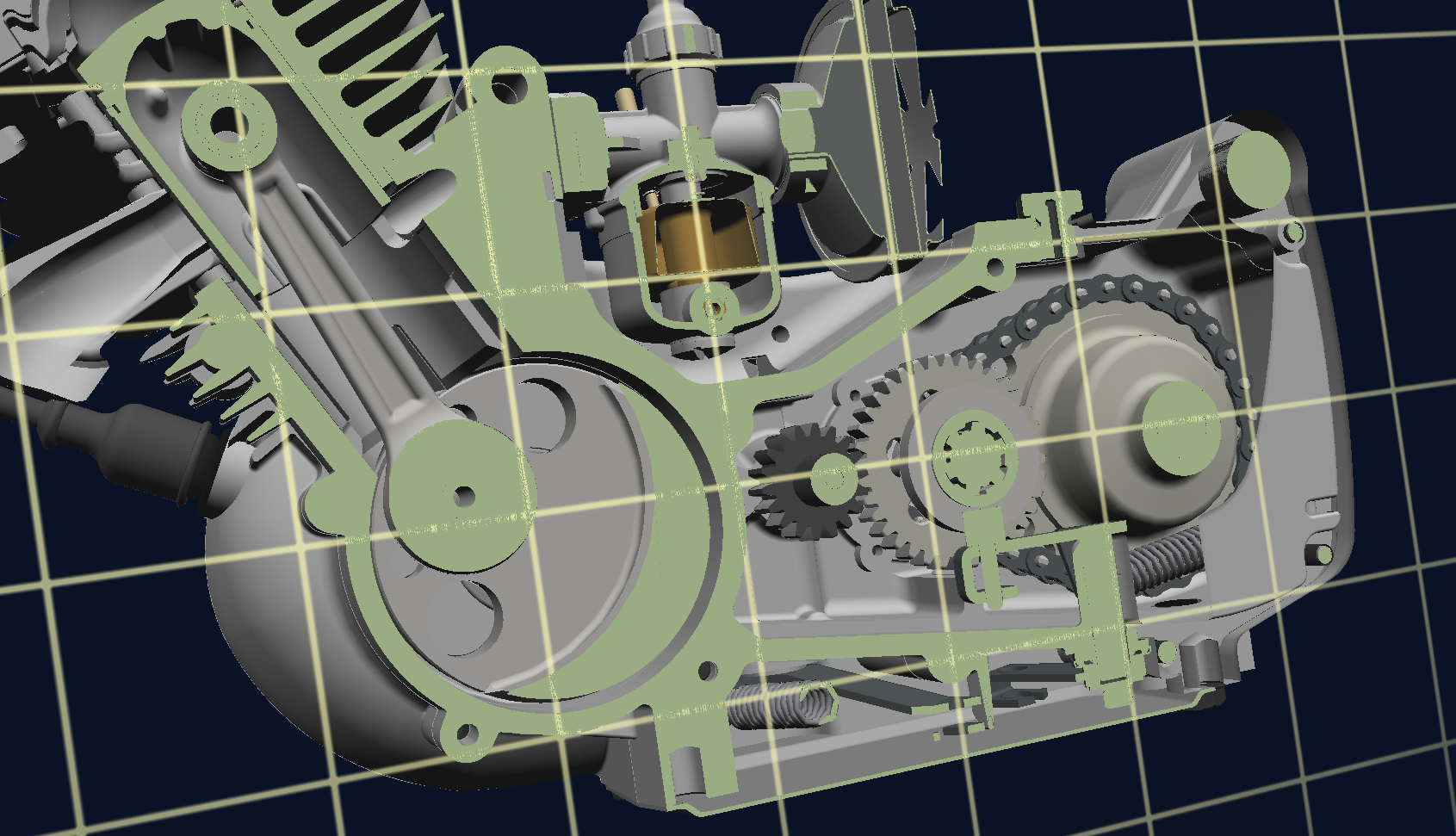 The picture below shows a engine without capping, followed by an image with a capping surface. Solid parts are clearly marked and better visible.